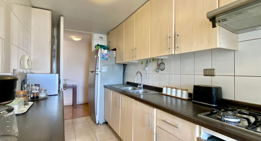 Tiene hall de entrada; living y comedor juntos, con equipo de AC y salida a una cómoda terraza. Cocina tradicional, con muebles a ambos lados, un área de comedor de diario tipo barra, y loggia de buen tamaño con ventilación natural.