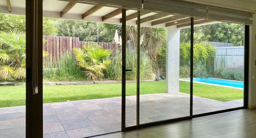 Tiene ventanas de termopanel en toda la casa; lindo jardín formado, con riego automático; piscina y un cómodo quincho techado. Cortinas roller en toda la casa. Además, como mira hacia un parque, tiene un vista preciosa!