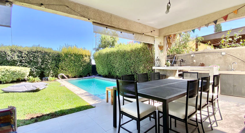 Impecable casa del año 2014, estilo mediterráneo. Ubicada en condominio con acceso controlado, a pasos del colegio Alianza Francesa y cerca del Jumbo de Chamisero. Seguridad 24/7, estacionamientos de visitas y juegos infantiles.